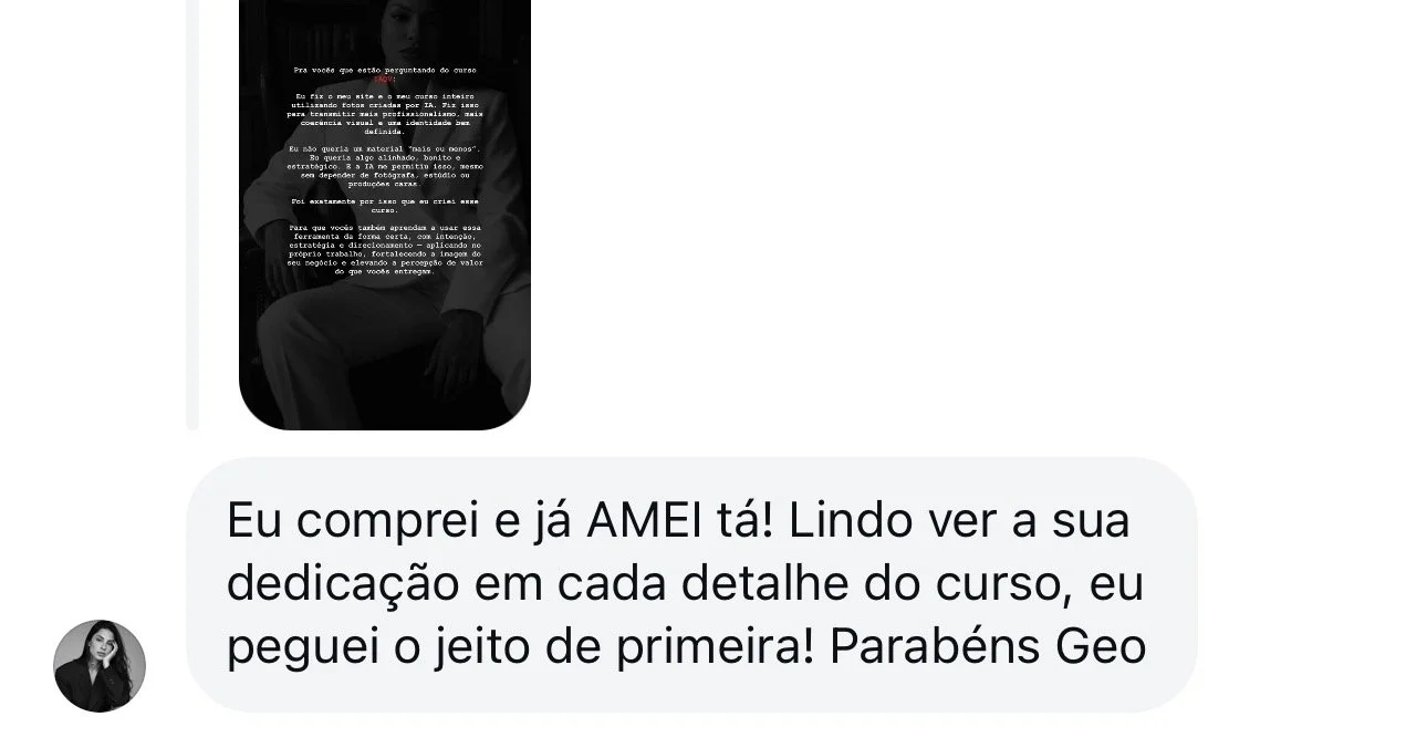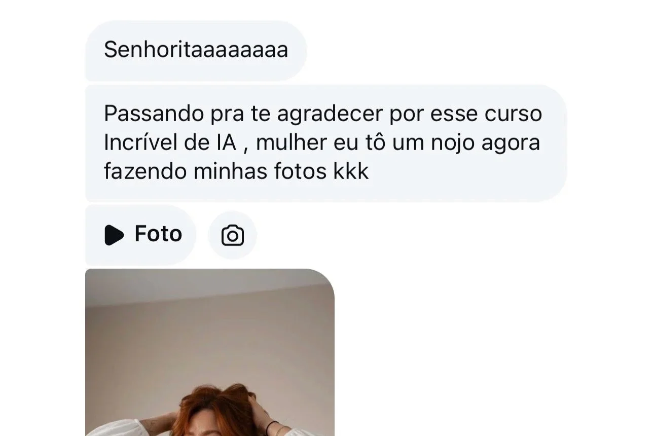 No meu curso, eu te ensino a transformar qualquer foto comum — tirada no celular, em casa, com iluminação simples — em uma foto profissional usando Inteligência Artificial.